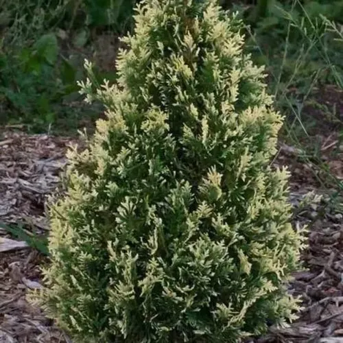 Хвоя у Брабант Вариегатта пёстрая: основная зелёная окраска красиво оттеняется кремовыми кончиками побегов, что придаёт растению свежий, нарядный вид. Крона туи узкоконическая, густая и плотная, легко формируется и хорошо переносит стрижку, что особенно ценно для формирования аккуратных живых изгородей или декоративных бордюров. Высота взрослого растения обычно достигает 4–6 метров, ширина — 2–3 метра, а прирост составляет до 30–50 см в год, благодаря чему туя быстро превращается в яркий зелёный акцент на участке.